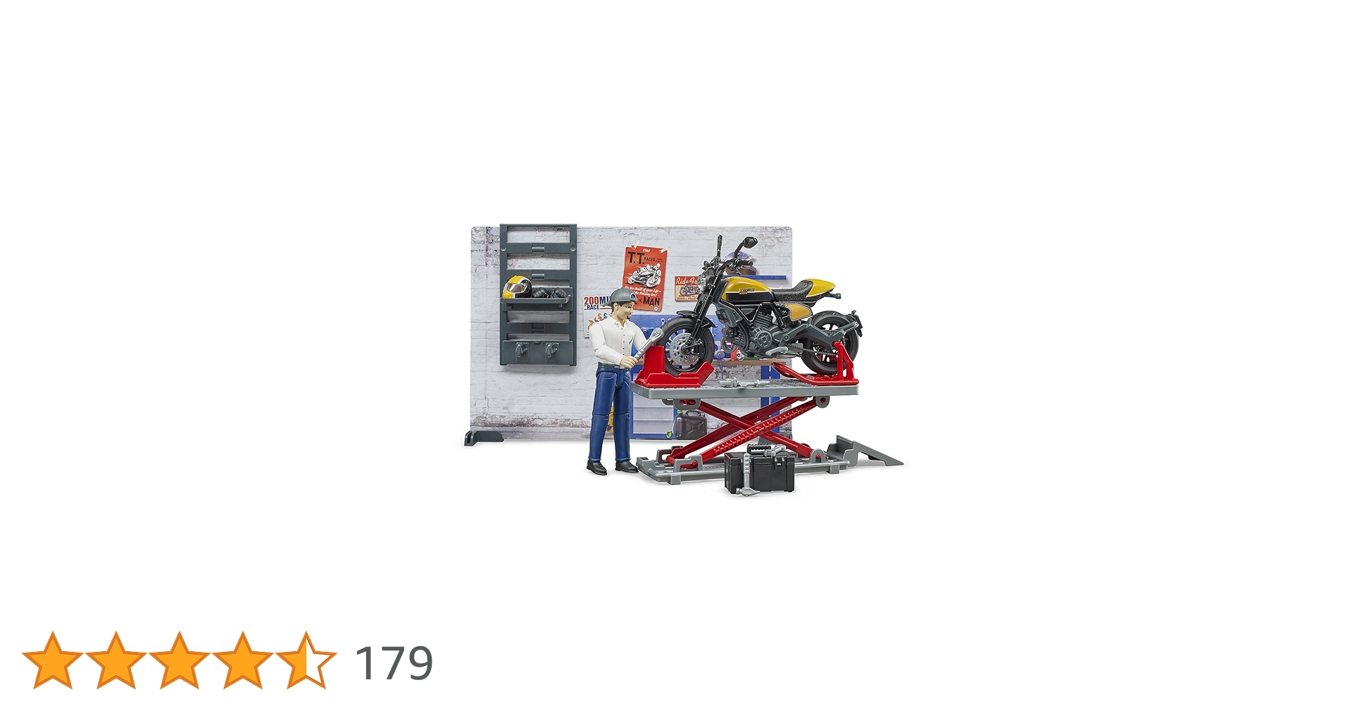 オートバイのメンテナンススペースを再現したbruder b-worldのおもちゃ。展示にも最適なギミックのおもちゃです。