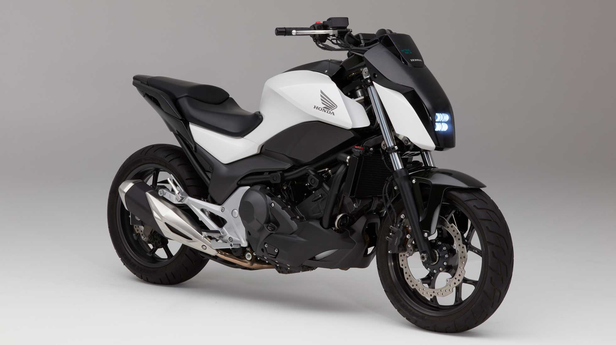 「ASIMOに代表されるヒューマノイドロボット研究で培ったHonda独自のバランス制御技術を二輪車に応用した、世界初公開の実験車です。」HONDAサイトから。