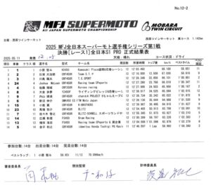 レース1順位表 全日本スーパーモト選手権2025rd1茂原