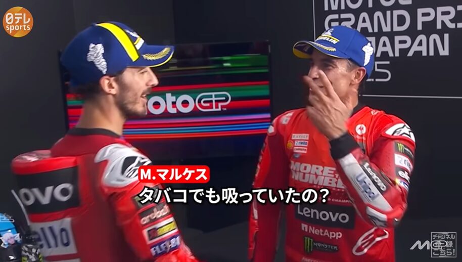 【年間王者決定の舞台裏】M.マルケス&バニャイア&ミルの貴重会話|ピット祝勝会にカメラ潜入撮影“だるまの目入れ”はまさかの…|MotoGP™第17戦日本GP