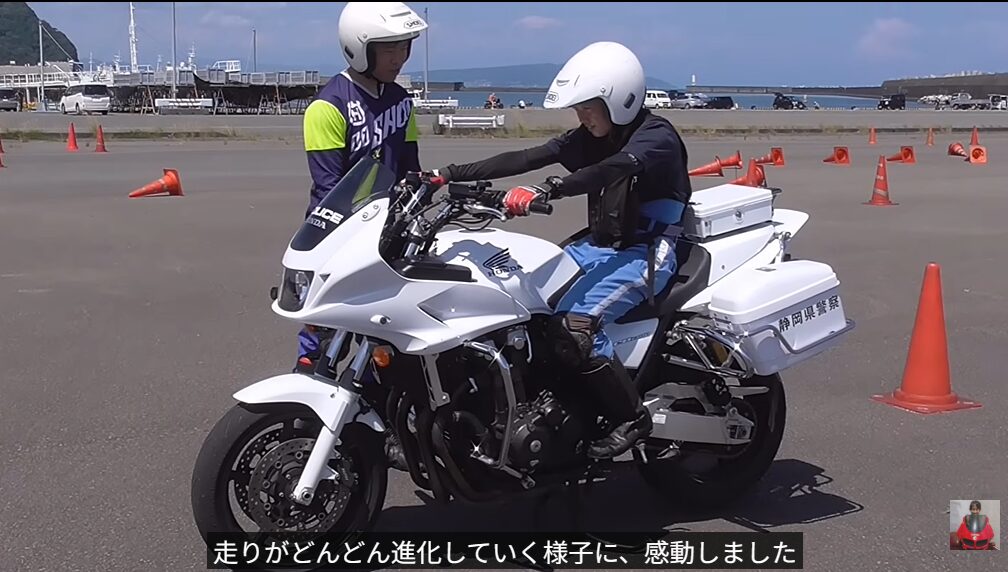 神回!ジムカーナ選手、全国白バイ大会前の静岡県警女性白バイ隊員に個人レッスン!