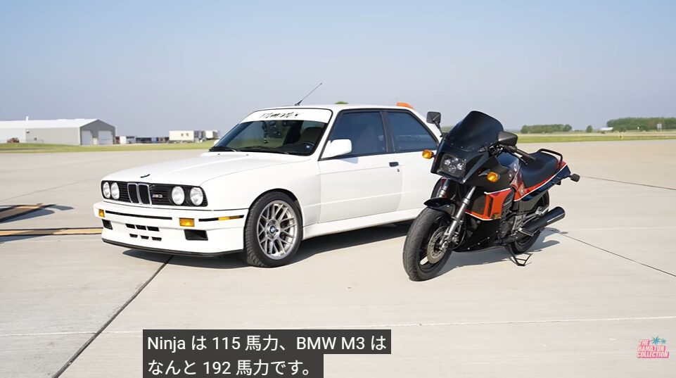 1932年式ハーレーダビッドソンVLDフラットヘッド(サイドバルブ)<34馬力> vs 1919年式FORDモデルA<20馬力> /1960年式 BMW R60サイドカー<30馬力> vs ダッジ デイトナ(NASCAR公認車) / GPZ900R<115馬力>vs BMW E30 M3<192馬力>/ ハヤブサ<197馬力> vs ランボルギーニ・アベンタドールSV<691馬力> / Ninja H2<231馬力> vs ブガッティ・シロンSS<1600馬力>