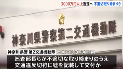 TBS NEWS DIGチャンネルから。神奈川県警による約2700件にもおよぶ、不正取り締まりの続報。徴収された違反金は3000万円以上で今後返還されるとの事。