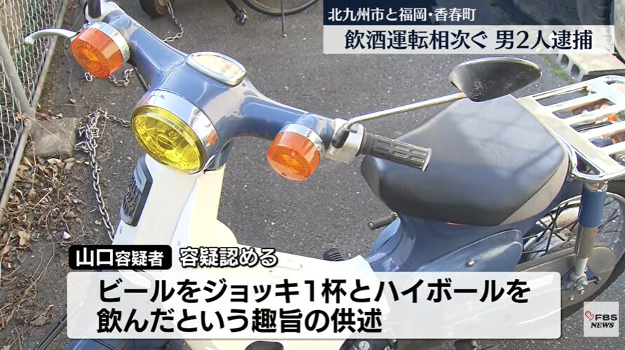 テールランプが消えた原付バイク→基準値の4倍近くのアルコール 20歳の大学生を逮捕 北九州市