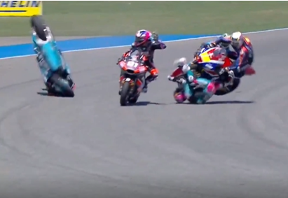 MOTO2第1戦タイGP決勝。4列目10番手スタートのダビド・アロンソ選手の恐ろしいクラッシュシーン。