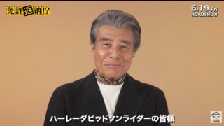 NEWS 舘ひろし氏「ハーレーダビッドソンライダーの皆様へ」主演映画『免許返納!?』PR動画。予告編。舞台裏映像。 舘ひろし氏主演ノンストップドライブコメディ映画『免許返納!?』のPR動画でハーレーダビッドソンライダーの皆様に向けたメッセージが公開。アクションスターの南条弘が、周囲から免許返納を迫られるコメディ映... 2026.03.20 NEWS